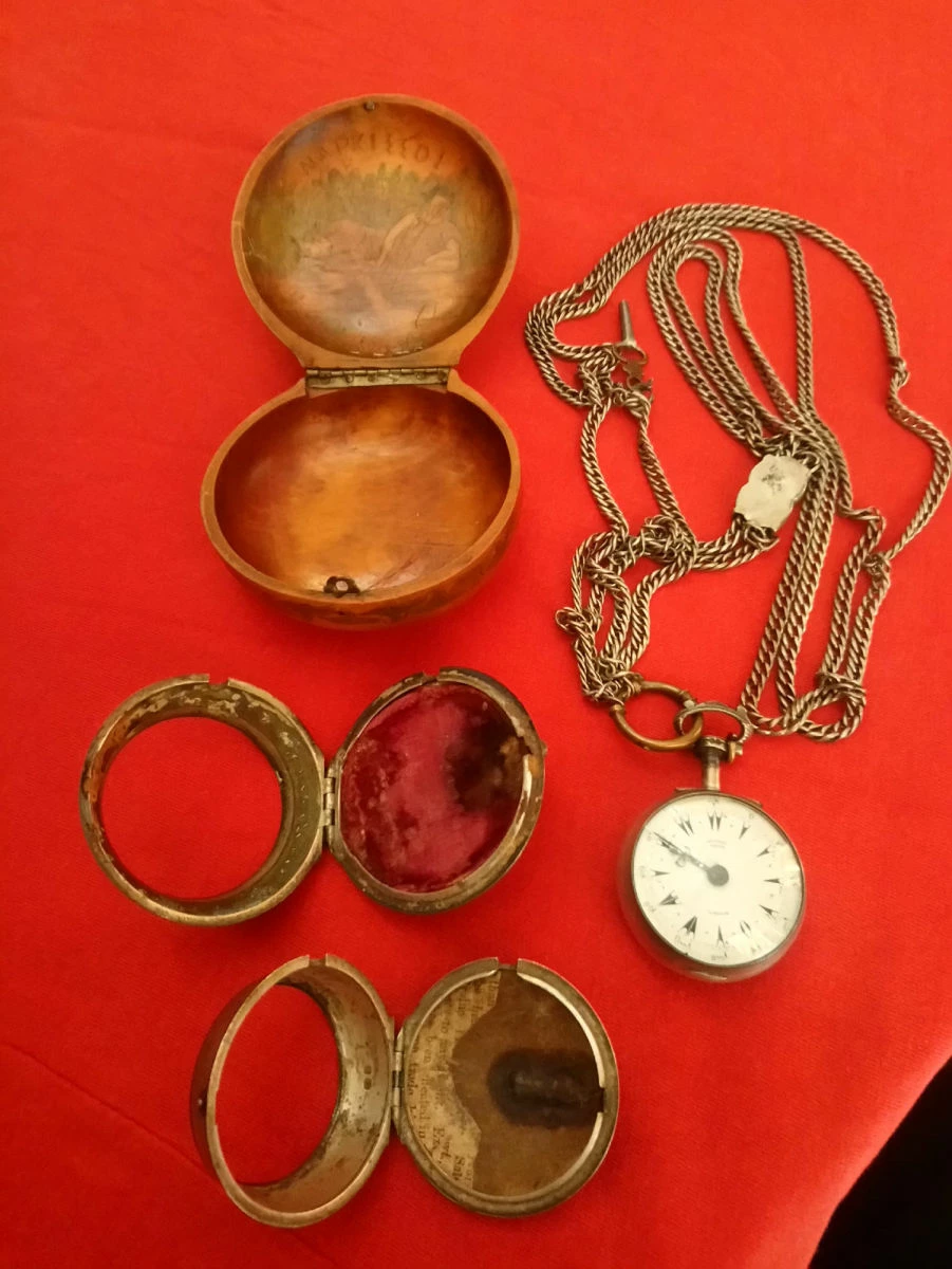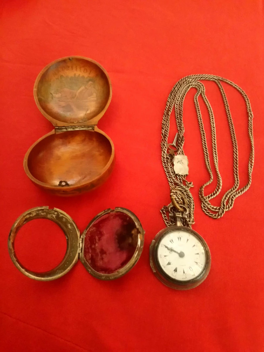 Μπαούλο αγωνιστή τού 1821 με τα κημηλεια πού περιείχε. Ρολόι πριορ (κρεμμύδι) τού 1790, με εξωτερική ξύλινη θήκη ταξιδιού, ένα ασημένιο κρεμμύδι τσέπης, χάντρες κεχριμπαρι καχραμαν, Τσεβρες σπάνιος τόσο παλιός σε άριστη κατάσταση (μάλλον γυναίκα καπετάνισσα), υπάρχει το ξύλινο διακοσμητικό με το πρόσωπο της, καί δύο κημηλεια, πορσελανινα αυγά διακοσμημένα με θρησκευτικά καί ελληνικά σύμβολα.