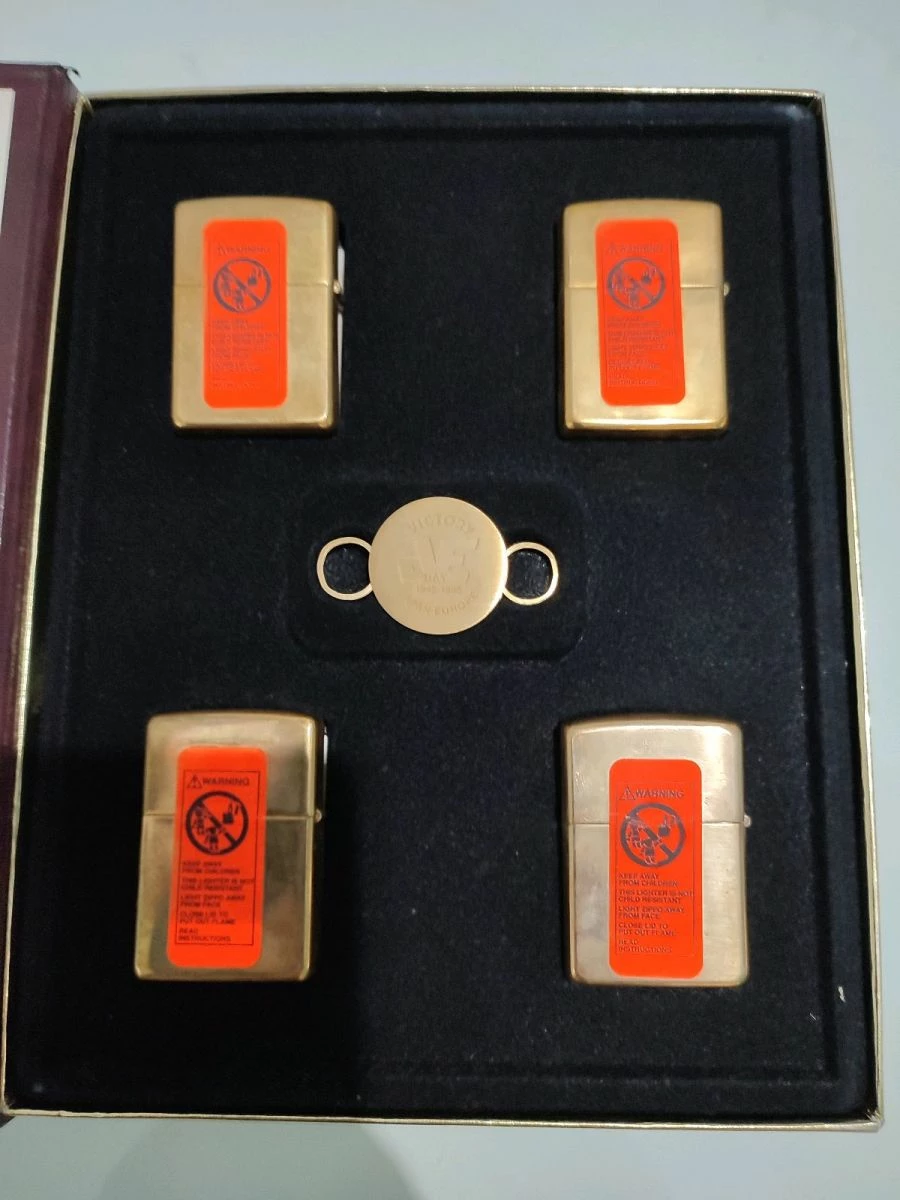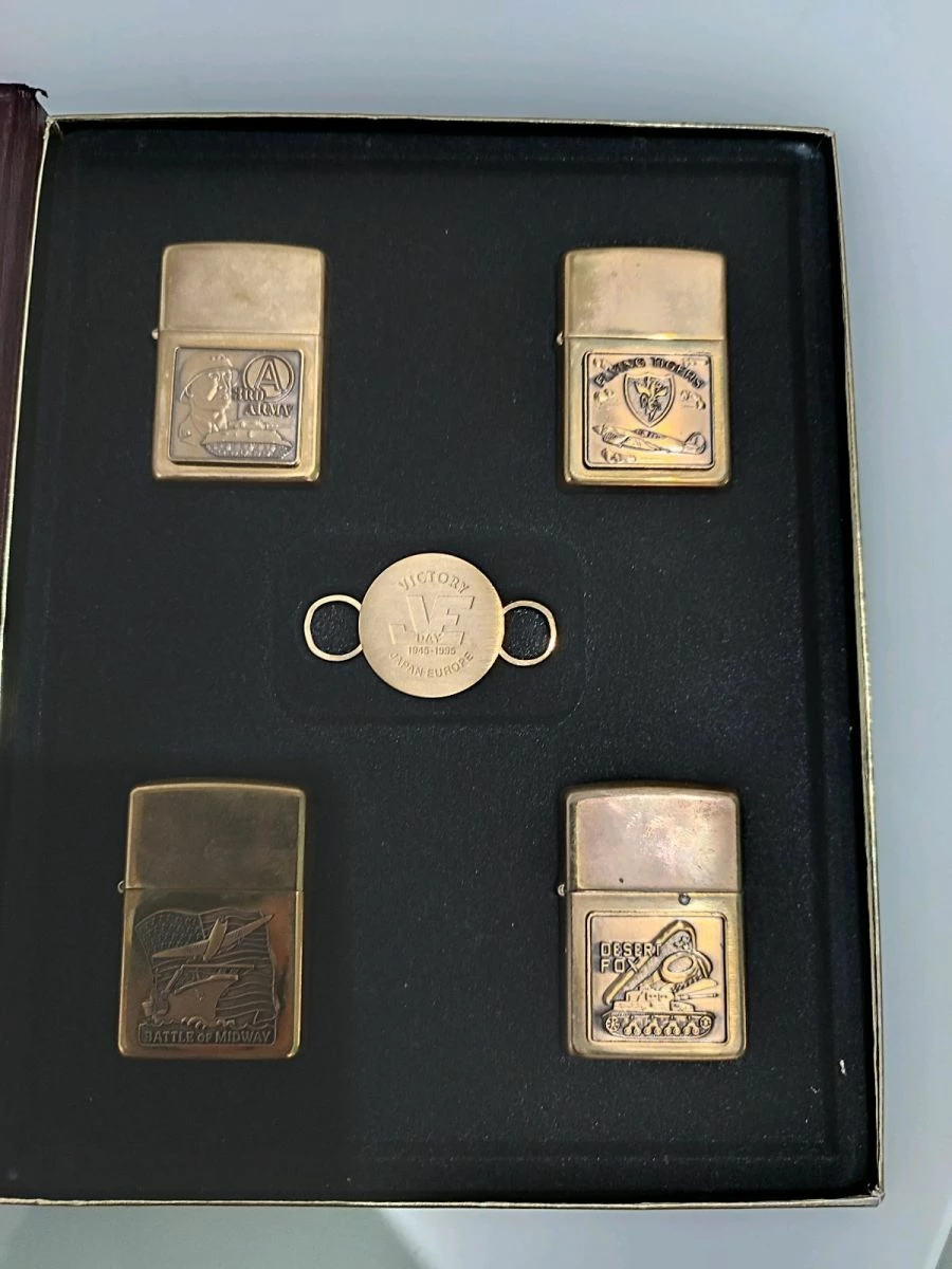 ΣΥΛΛΕΚΤΙΚΟΙ ZIPPO ΜΕ ΤΑΙΝΙΑ ΑΣΦΑΛΕΙΑΣ ΣΕ ΠΟΛΥΤΕΛΗ ΚΑΣΕΤΙΝΑ ΒΙΒΛΙΟ ΣΕ ΑΝΑΜΝΗΣΗ ΤΟΥ Β ΠΑΓΚΟΣΜΊΟΥ ΠΟΛΈΜΟΥ.