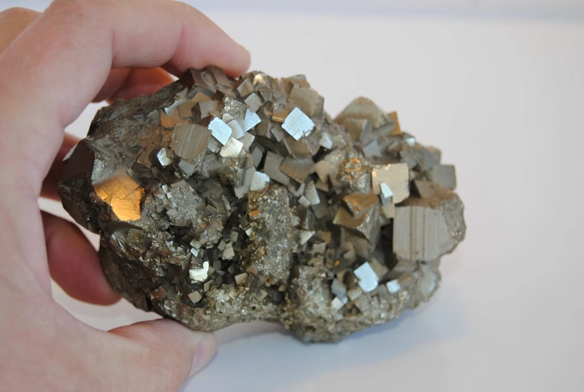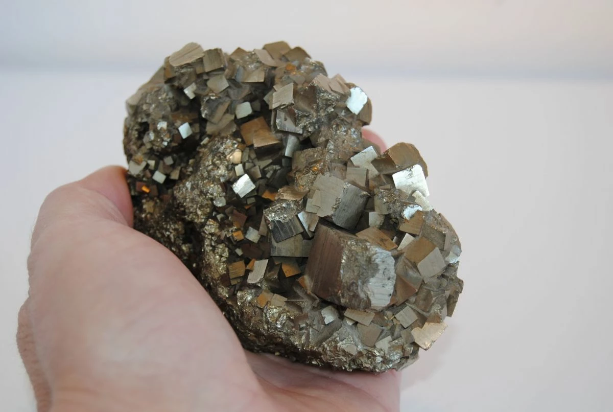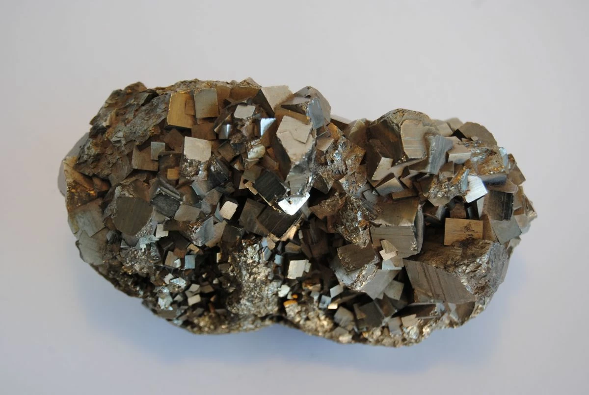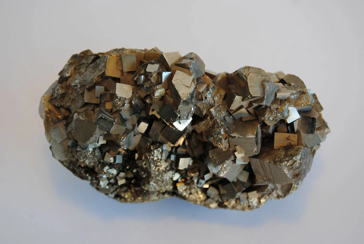 Συσσωμάτωμα κρυστάλλων 1050 γρ. βάρος σιδηροπυρίτη από το Περού . 12 Χ 7 Χ 5.5 εκ.