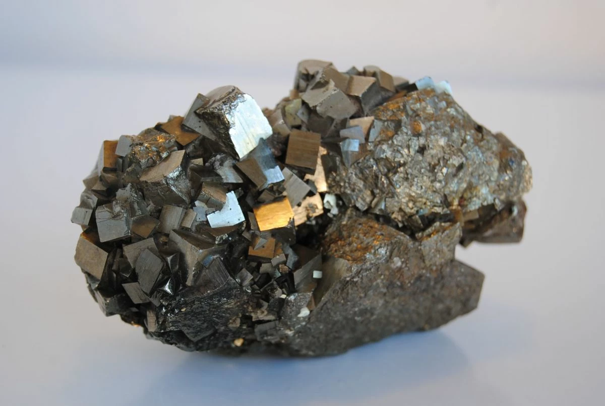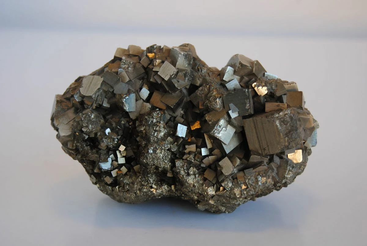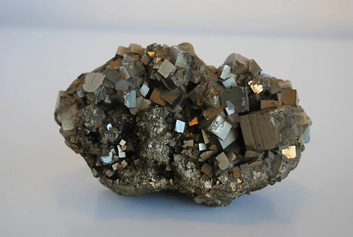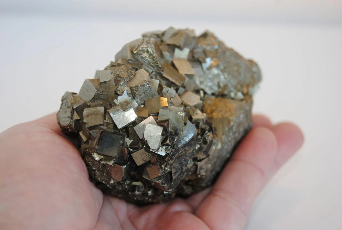 Συσσωμάτωμα κρυστάλλων 1050 γρ. βάρος σιδηροπυρίτη από το Περού . 12 Χ 7 Χ 5.5 εκ.