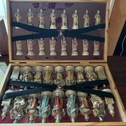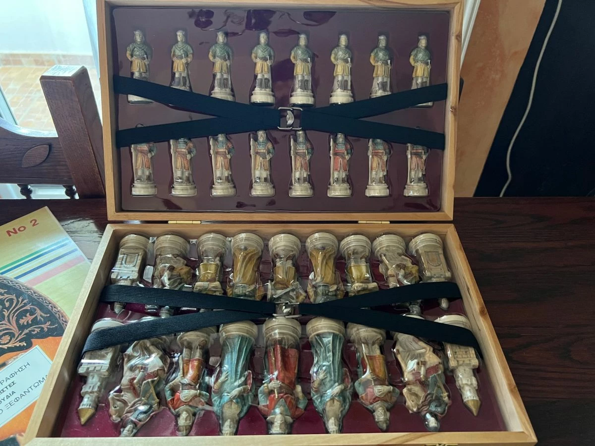 Σκάκι με αγαλματίδια από τη συλλογή της DEAGOSTINI. Πιόνια ζωγραφισμένα στο χέρι. Πλήρες, απείραχτο μέσα στη βελούδινη θήκη μαζί με την προστατευτική ζελατίνα και την σκακιέρα τους.