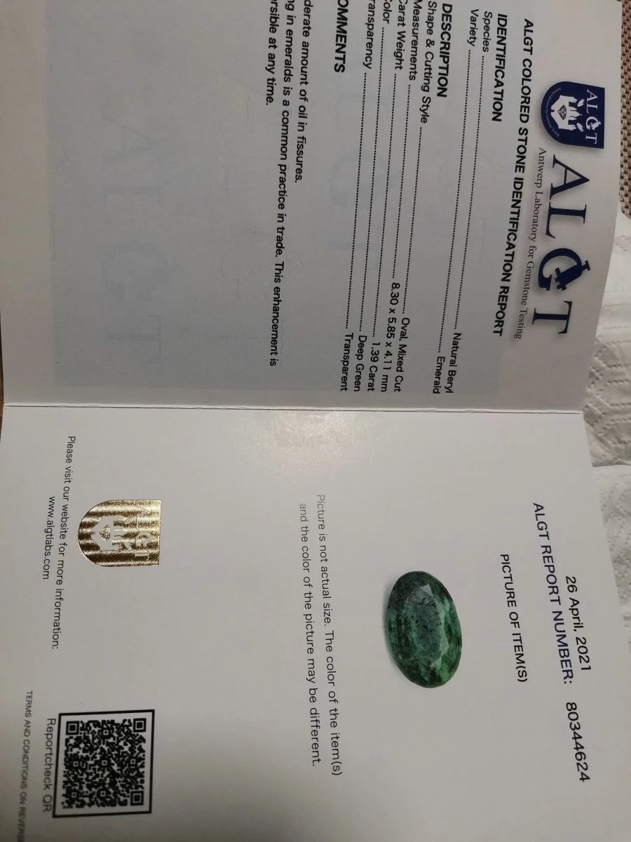 Natural beryl(σμαραγδι) 1.39 CT (καράτια) βαθύ πράσινο..