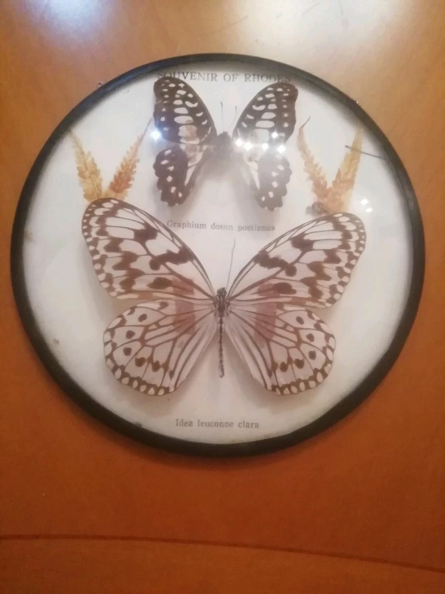 Σπάνια συλλεκτική αντίκα κάδρο με πεταλούδες σουβενίρ από την κοιλάδα με τις πεταλούδες της Ρόδου