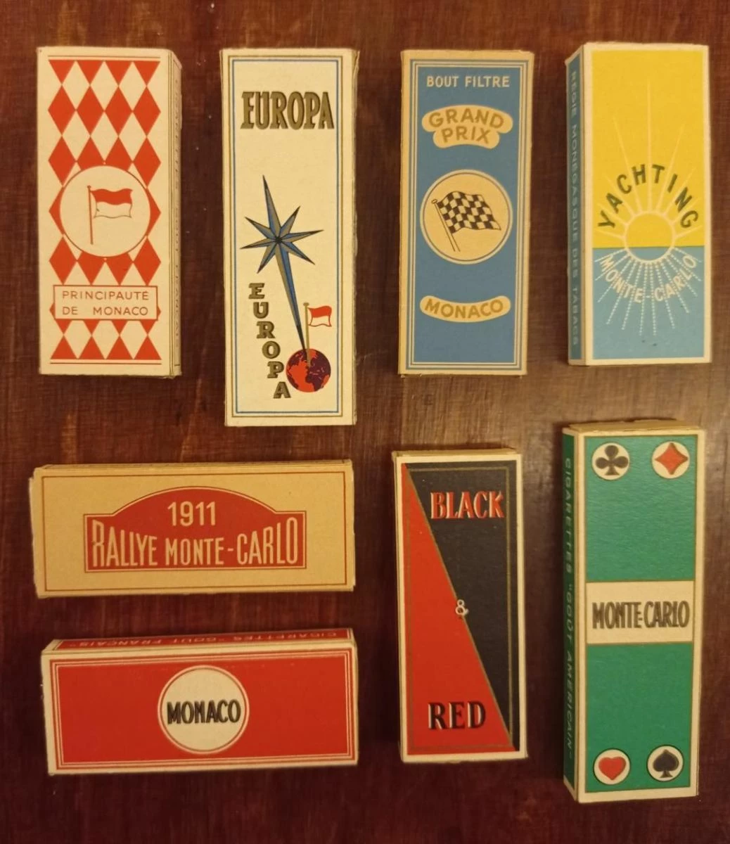Σπάνια συλλεκτική σειρά οκτώ πακέτων τσιγάρων από το Μονακό.