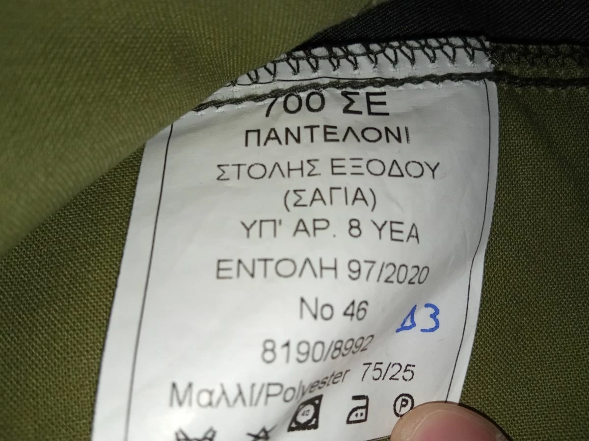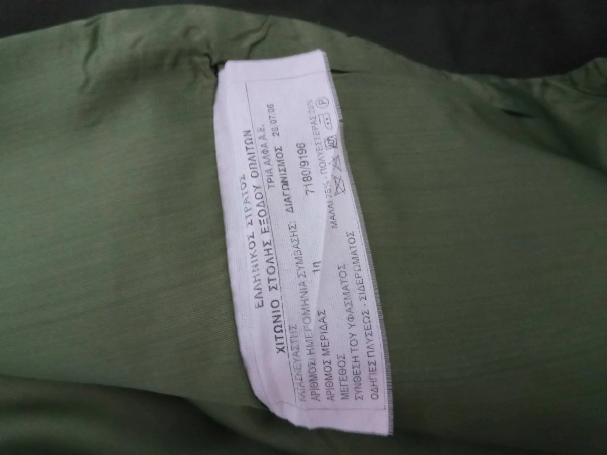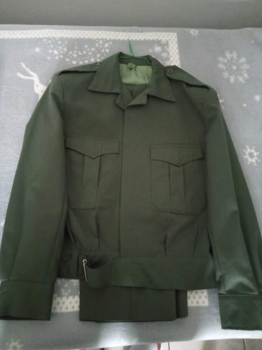 Στολή 8Γ εξόδου, “αφρικανική”. Το χιτώνιο δεν έχει φορεθεί ποτέ, το παντελόνι έχει φορεθεί 1-2 φορές. Μέγεθος χιτωνίου 7180/9196 και μέγεθος παντελονιού 46 8190/8992. Για άτομο με ύψος περίπου 1,70 και βάρος περίπου 75 κιλά.