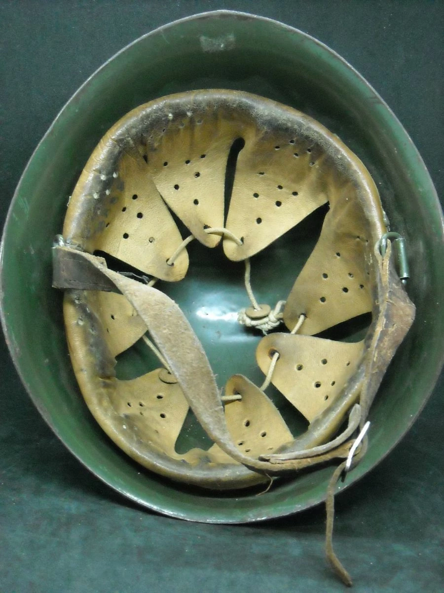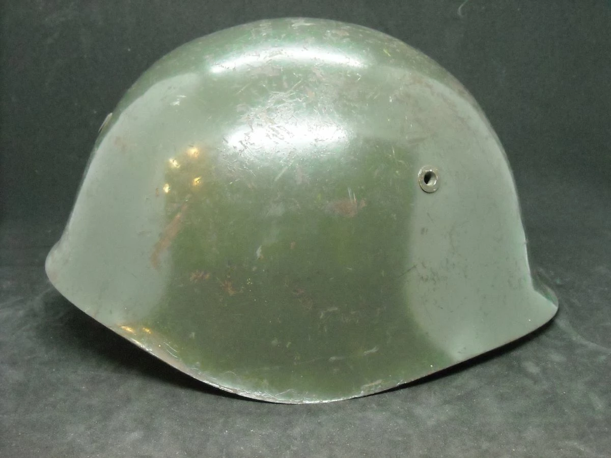 Στρατιωτικό κράνος εποχής σε πράσινο χρώμα πιθανόν Βουλγαρίας με το εσωτερικό του σε καλή κατάσταση.