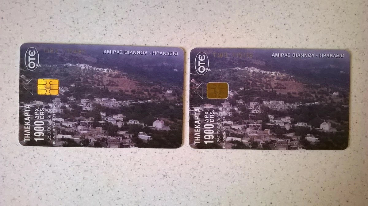 2 τηλεκάρτες – Αμιράς Βιάννου – Ηράκλειο – Ανοιχτές