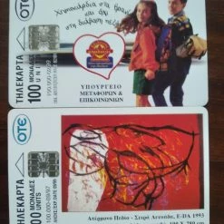 Τηλεκαρτα 2/99 σχολικός τροχονόμος τιράζ 100.000 κωδικός πάνω από την κίτρινη λωρίδα. Τιμή πώλησης 5€ η δύο τηλεκαρτες!!