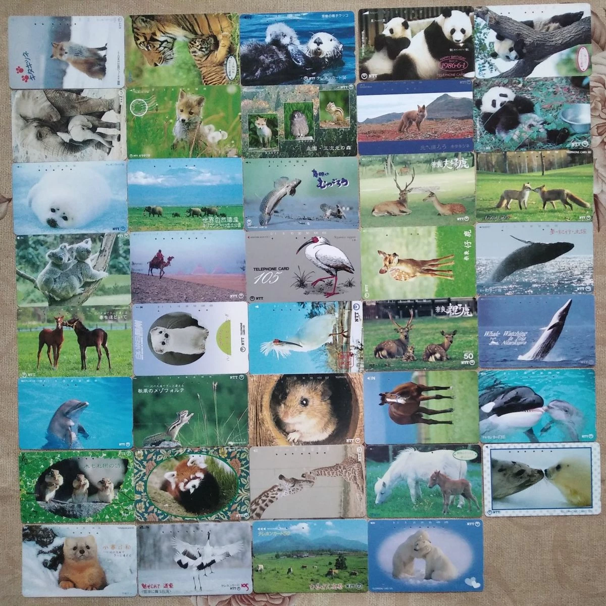 39 τηλεκαρτες από την Ιαπωνία με θέμα (ζώα, πουλιά και ψάρια).
