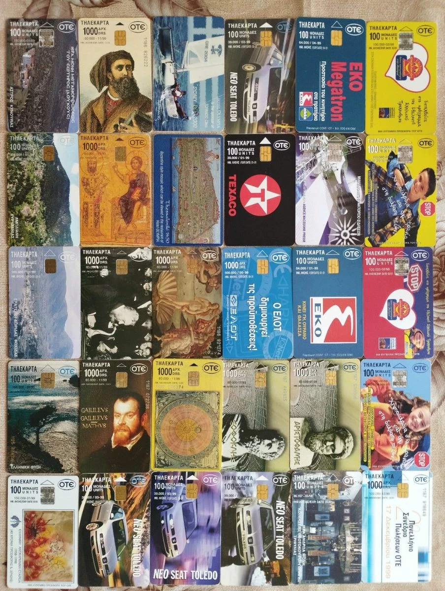 30 διαφορετικές ελληνικές τηλεκαρτες 1999 με τιράζ (35.000-186.000 και η τηλεκαρτα ΕΛΟΤ 6/99 το καλό τσιπ!!)