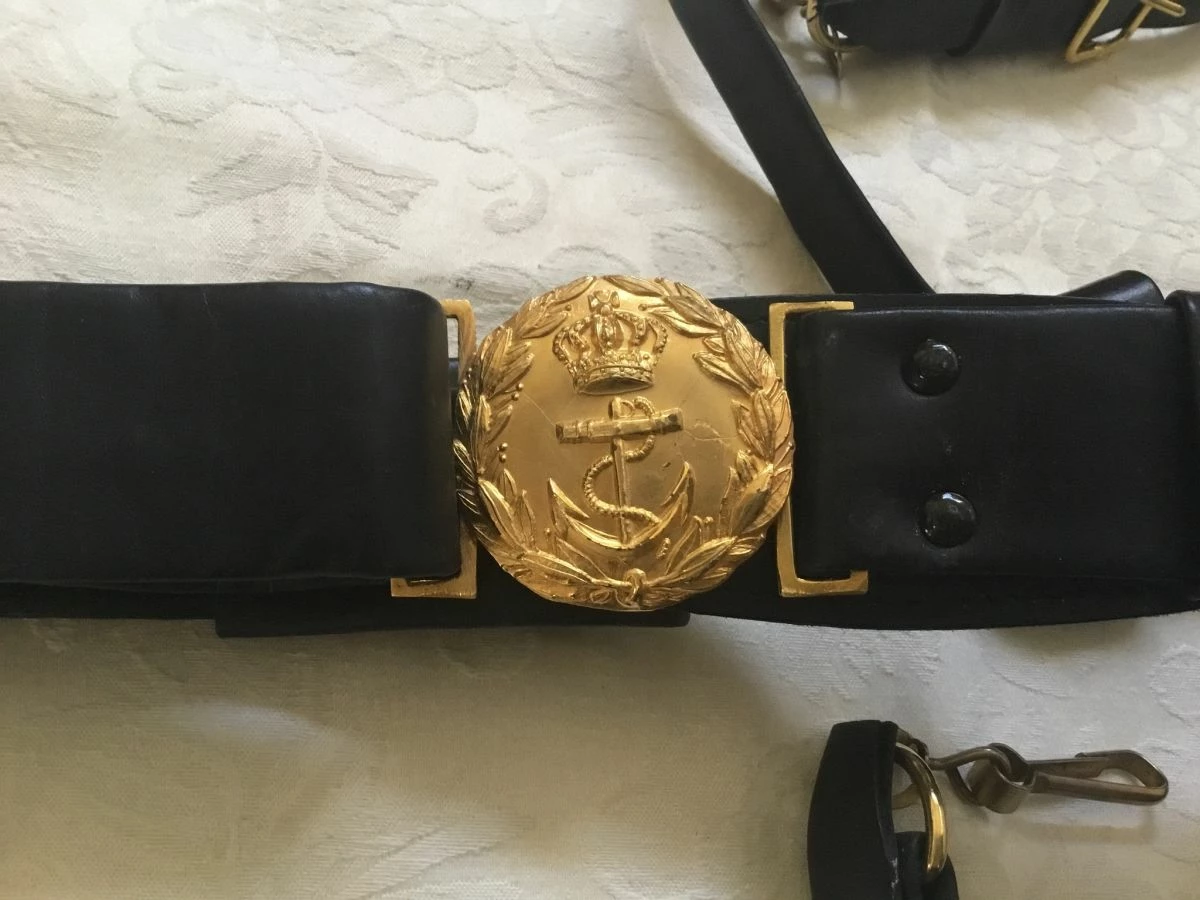 Ζώνη ανάρτησης ξίφους αξιωματικού του Βασιλικού Πολεμικού Ναυτικού. Κατάσταση καλή, μεταχειρισμένη.