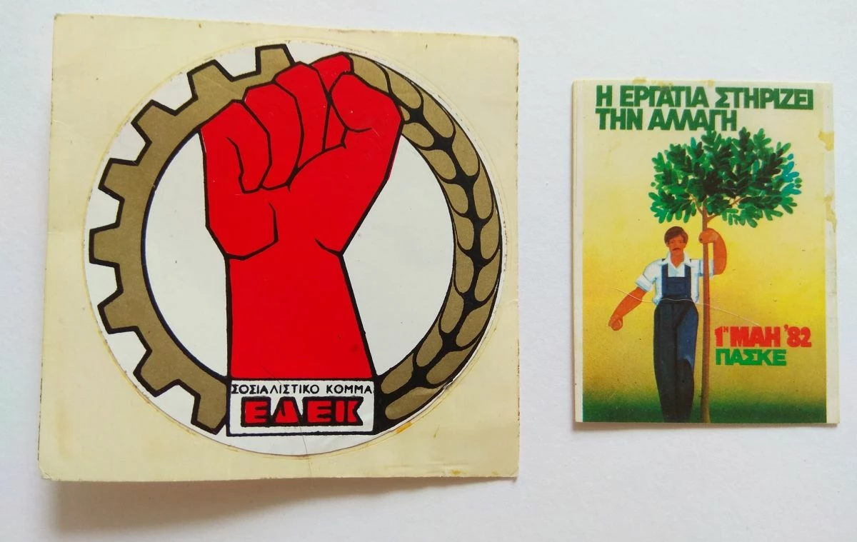 ΠΡΟΕΚΛΟΓΙΚΕΣ ΒΙΝΙΕΤΕΣ ΠΑΣΟΚ ΚΙ ΕΔΕΚ ΑΥΤΟΚΟΛΗΤΕΣ ΔΙΑΣ.7,5Χ8-6Χ4,5cm