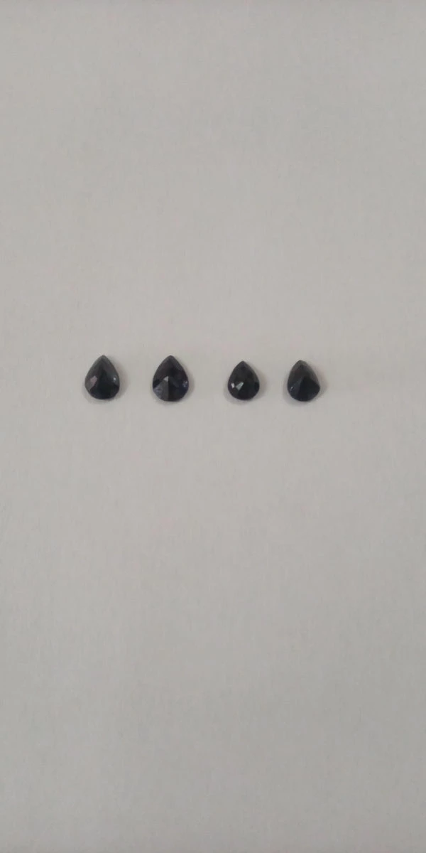 Ζαφείρια (4 τεμ.) μαυρο-μπλε χρώμα, ημιδιαφανα, σε σχημα δάκρυ, κοπη ταγιέ. ιδανικά για να φτιάξετε κοσμήματα. διαστάσεις 6×4×2 και 5×4×2 χιλιοστά.